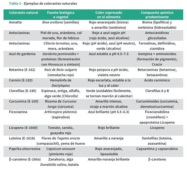 El color es una de las primeras señales sensoriales percibidas por los consumidores al momento de evaluar un alimento, y desempeña un papel determinante en la aceptación, apetencia y percepción de frescura y calidad[1]. En consecuencia, los colorantes de alimentos se han convertido en herramientas tecnológicas indispensables para la formulación de productos atractivos, estables y competitivos en el comercio. Tradicionalmente, la industria ha recurrido al uso de colorantes sintéticos debido a su alta intensidad cromática, bajo costo, buena estabilidad y facilidad de aplicación en diversas matrices alimentarias. No obstante, la creciente preocupación por sus posibles efectos adversos sobre la salud humana, junto con una demanda sostenida por ingredientes más naturales y seguros, ha incentiva do un giro progresivo hacia el empleo de colorantes naturales. Los pigmentos naturales (extraídos de plantas, microorganismos, algas y hongos) no sólo confieren color, sino que también aportan propiedades bioactivas relevantes y potencial quimio preventivo. Grupos como las antocianinas, carotenoides, clorofilas y betalaínas han sido ampliamente estudiados por su valor funcional, lo que ha reforzado su posicionamiento dentro de tendencias emergentes como el “etiquetado limpio” y el desarrollo de alimentos funcionales. Sin embargo, su aplicación masiva enfrenta múltiples desafíos, entre ellos su baja estabilidad frente a condiciones de procesa miento, su interacción con ingredientes específicos y la variabilidad de su rendimiento según la fuente y el método de obtención.