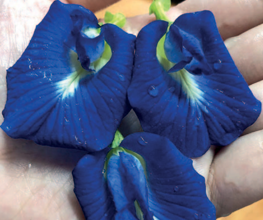 Antocianinas. La flor de guisante de mariposa (Clitoria ternatea) es fuente de antocianinas tipo ternatinas, responsables de un intenso color azul en condiciones de pH ácido a neutro[35]. Los extractos se obtienen mediante infusión o sonicación, y presentan buena estabilidad térmica y aceptable resistencia a cambios de pH[36,37]. Su funcionalidad se ha potenciado mediante técnicas de encapsulación con biopolímeros[38]. Su aplicación se extiende a bebidas, confites y sistemas de envasado inteligente, donde el cambio de color inducido por el pH se utiliza como indicador de frescura[39].