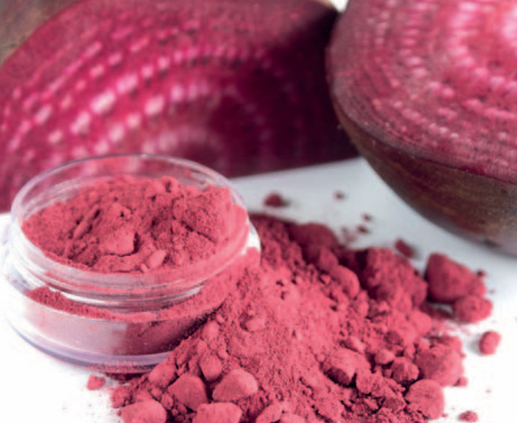 Betalaínas. El betabel o remolacha (Beta vulgaris) constituye la principal fuente industrial de betalaínas, pigmentos hidrosolubles divididos en betacianinas (rojo-violeta) y betaxantinas (amarillo-anaranjado). Estos compuestos presentan actividad antioxidante, capacidad de neutralización de radicales libres y posibles efectos beneficiosos sobre la salud cardiovascular y cognitiva[46,47]. No obstante, su estabilidad se ve comprometida por factores como la exposición a luz, oxígeno, cambios de pH y temperatura[48]. Las estrategias actuales incluyen encapsulación, mejora de condiciones de extracción y búsqueda de fuentes pigmentarias alternativas[49]. La betanina, pigmento dominante del betabel, es ampliamente empleada en bebidas, suplementos y productos funcionales[50].