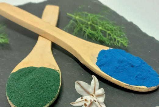 Ficocianina. Extraída de la cianobacteria Arthrospira platensis (espirulina), es un pigmento azul con aplicaciones tanto tintóreas como nutra céuticas. Su estabilidad óptima se sitúa en el rango de pH 5.5–6.0 y a temperaturas por debajo de 45°C[51, 52]. Dada su labilidad frente a la luz y el calor, se han desarrollado sistemas de encapsulación y uso de conservantes naturales para aumentar su vida útil[53]. Su purificación industrial emplea técnicas como precipitación con sulfato de amonio y cromatografía líquida[51]. Su uso se ha extendido a alimentos funcionales, cosméticos y formulaciones farmacéuticas, y se proyecta que su mercado alcance los 279.6 millones de dólares para 2030[54].