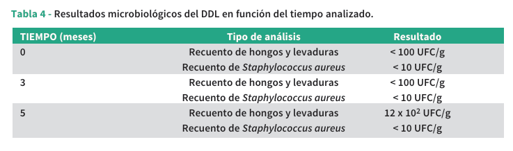 – Tomando como marco la normativa, los resultados microbiológicos indicaron que el producto DDL mantuvo su inocuidad y es apto para consumo, como mínimo hasta los tres meses.