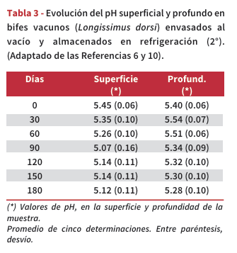 (10) Rodríguez, R. 2014. Estabilidad y vida útil de cortes de carne vacuna envasados al vacío y mantenidos en condiciones de refrigeración por largos períodos de almacenamiento. Aspectos tecnológicos y productivos en Argentina. Informe Técnico para la Dirección de Inocuidad de Productos de Origen Animal, SENASA, Argentina.